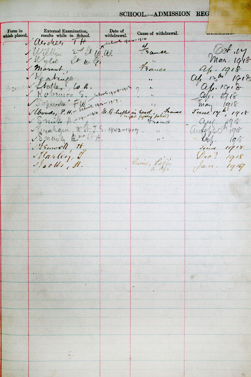 Wilkin, 2nd Lt W W school 1904-1910 France Oct 17