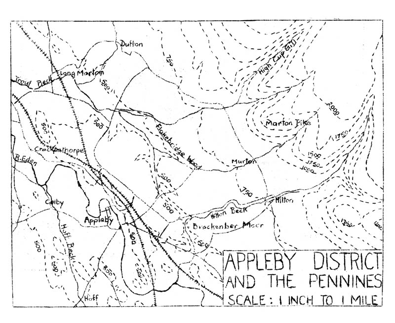 Once the evacuation party had settled in Appleby, Mr William Hunter prepared an 8-page souvenir booklet for the boys, with illustrations by art teacher, Mr Henry Stephenson. This particular copy belonged to Jack Urwin of the lower fourth , and on page 6 he has marked with a cross where he lived (in Thanet Terrace, near the Central School and between the two railway stations).