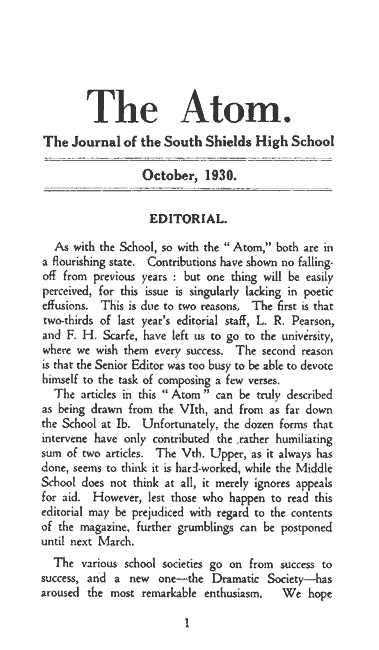 | home > traditions > the ATOM > 1930 October > pages 0 - 1 | South Shields Grammar-Technical School for Boys | |||||||||||||||||||||